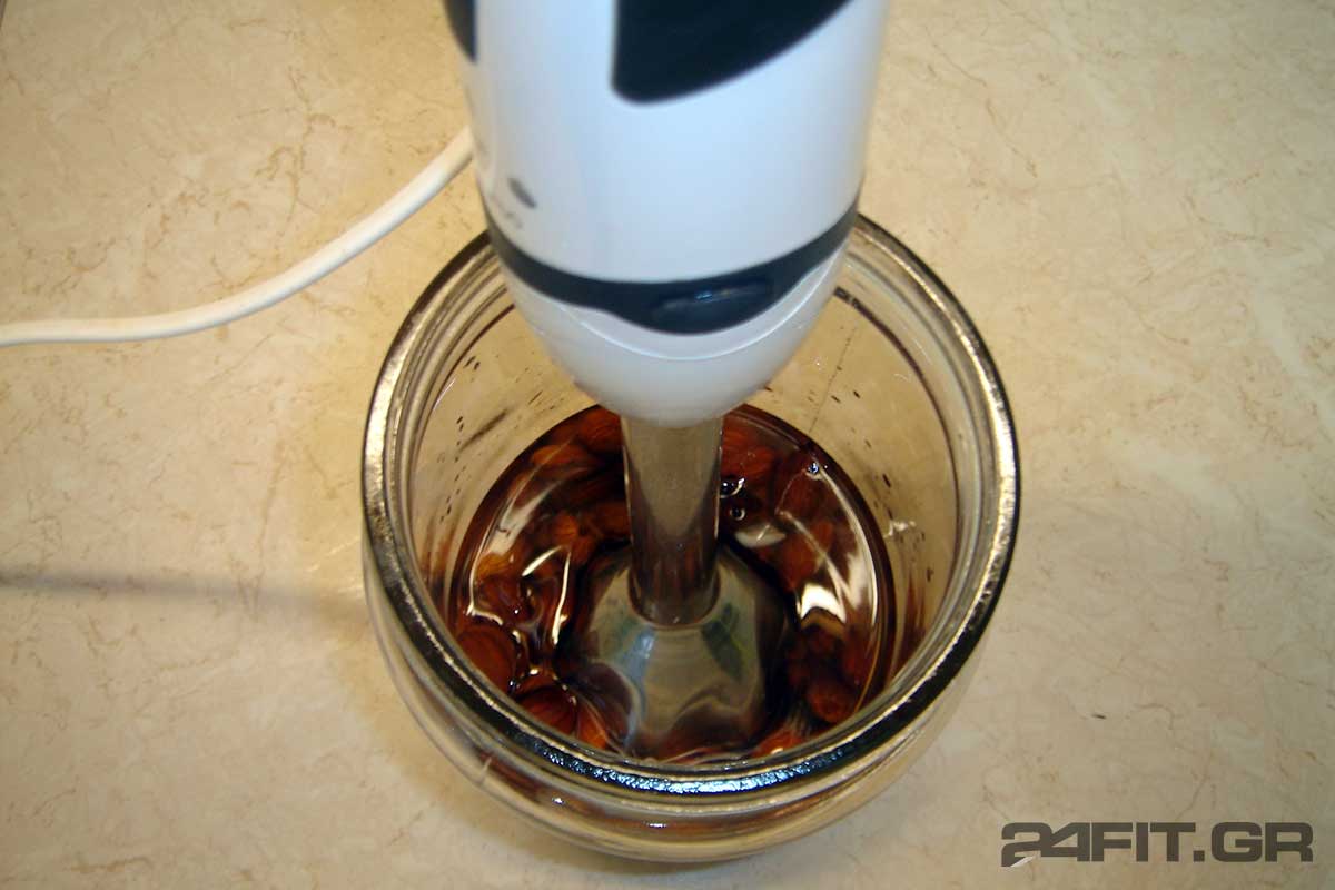 Στην παραπάνω συνταγή προσθέτετε 4-5 χουρμάδες ή 1/4 κούπας σιρόπι αγαύης και ένα κουταλάκι βανίλια σκόνη (την καφέ).